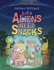 In the follow up to his breakout picture book, Even Monsters Need Haircuts, Matthew McElligott brings back the young barber in a new tale where his culinary concoctions bring him galaxy-wide fame. Creating snacks that make most humans queasy, this chef has found a new clientele-aliens. Readers will delight in McElligott's gently offbeat humor and unique artistry as spaceships full of hilarious creatures line up for a taste of the intergalactic cuisine. For space fans, foodies, and budding entrepreneurs alike, this book has something for everyone.