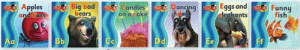 The Funny Photo Alphabet set makes learning to read a memorable experience. Each book has extraordinary pictures and rhythmic text. The learning focus is clear and uncluttered. Each 12 page book is a very simple story or poem that is memorable and has real meaning. The text also includes a small number of essential sight words that are frequently repeated. With Funny Photo Alphabet there are plenty of teaching opportunities for letter/sound correspondence, word study, word/picture match, book handling skills, tracking of print and phonemic awareness.